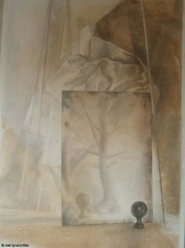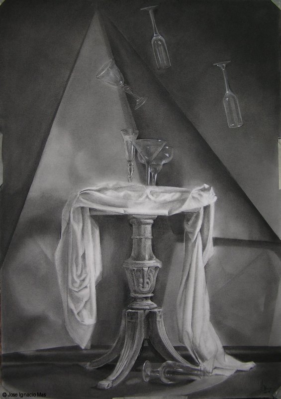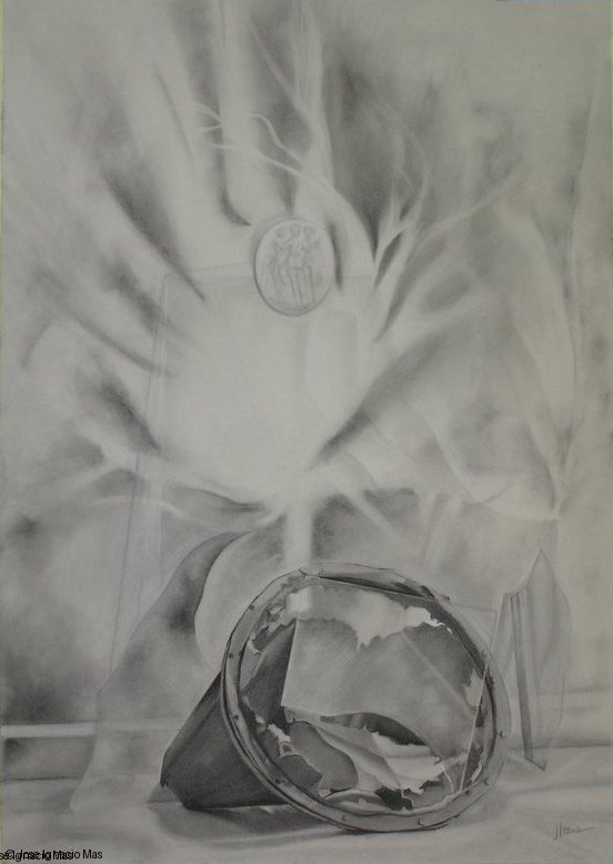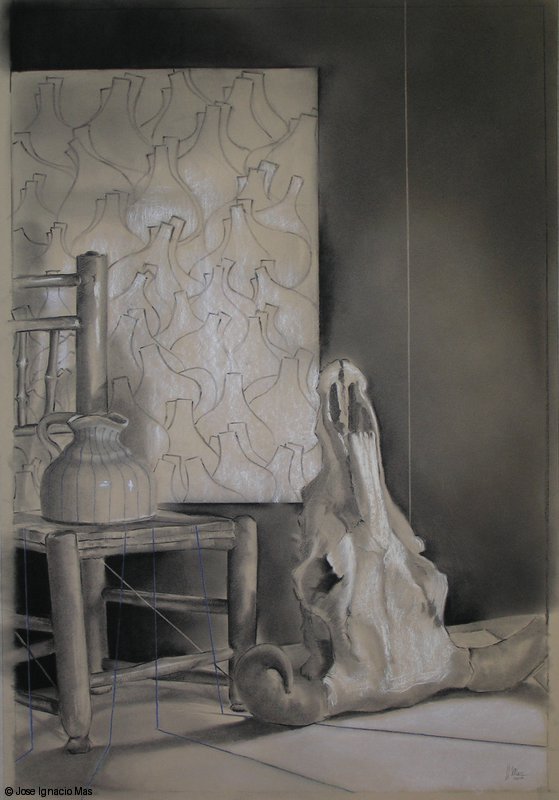 Composicion_con_paraguas_y_cabeza_griega__Grafito_sobre_papel_100x70 -