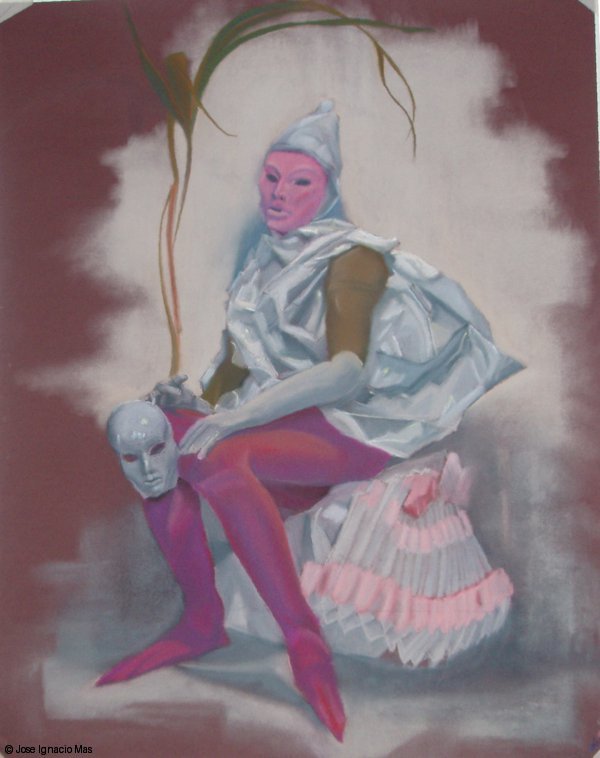 Munneco_con_cortina_roja_Carbon_y_pastel_sobre_papel-100x70 -